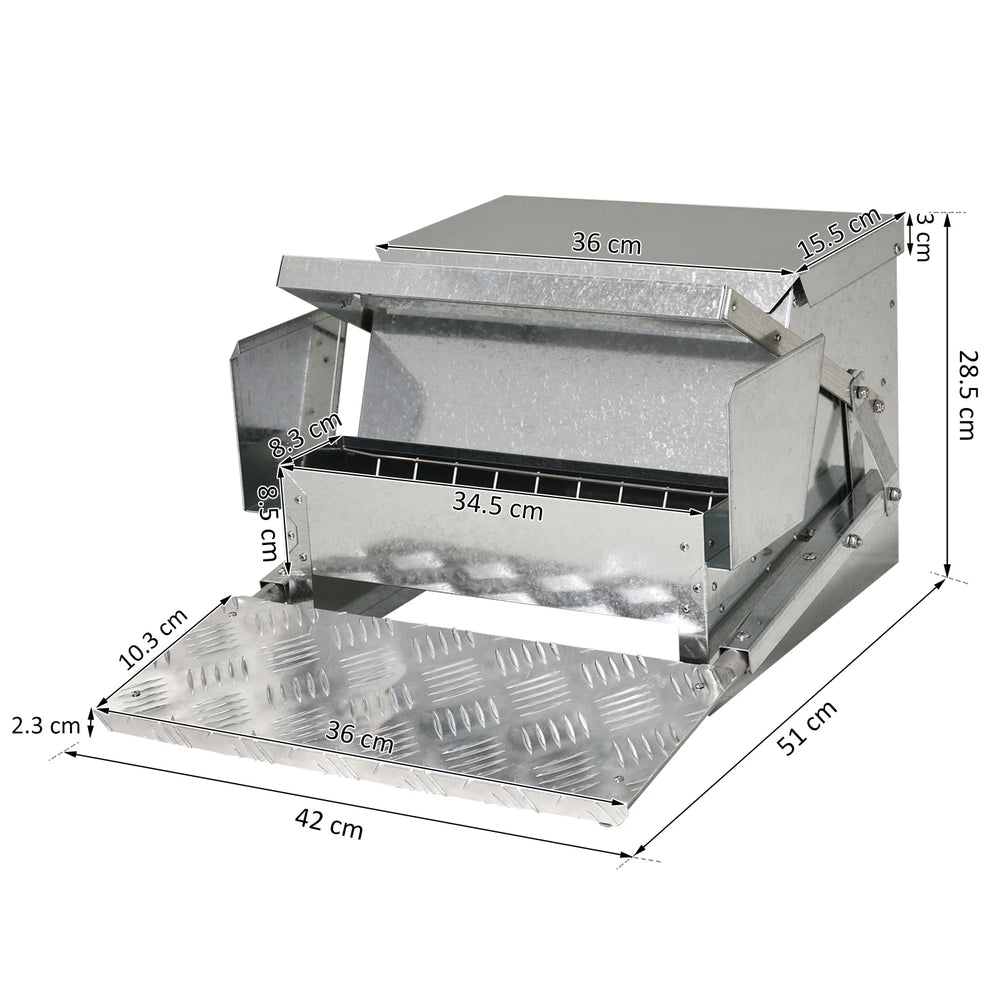 PawHut 11.5KG Automatic Chicken Poultry Feeder Rat Proof Treadle Self Opening with Galvanized Steel and Aluminium