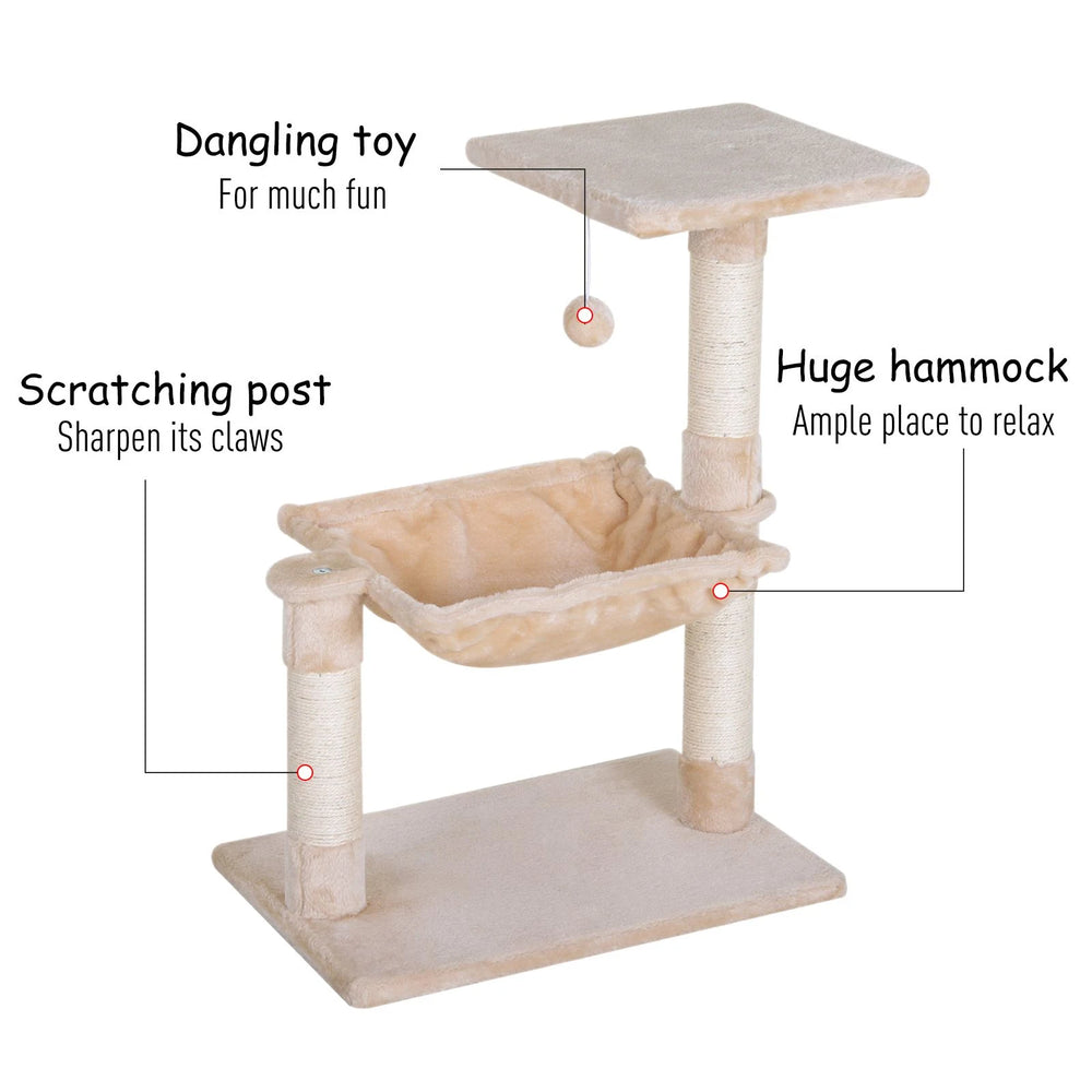 PawHut Cat Scratch Post with Bed Cat Tree for Indoor Cats Sisal Scratching Posts Hammock Kitty Activity Centre Beige