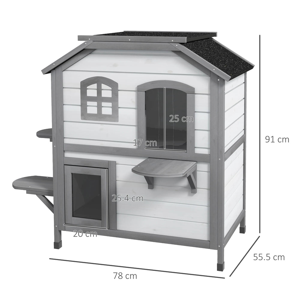 PawHut 2-Story Indoor or Outdoor Cat House W/ Escape Door, Cat Shelter, White