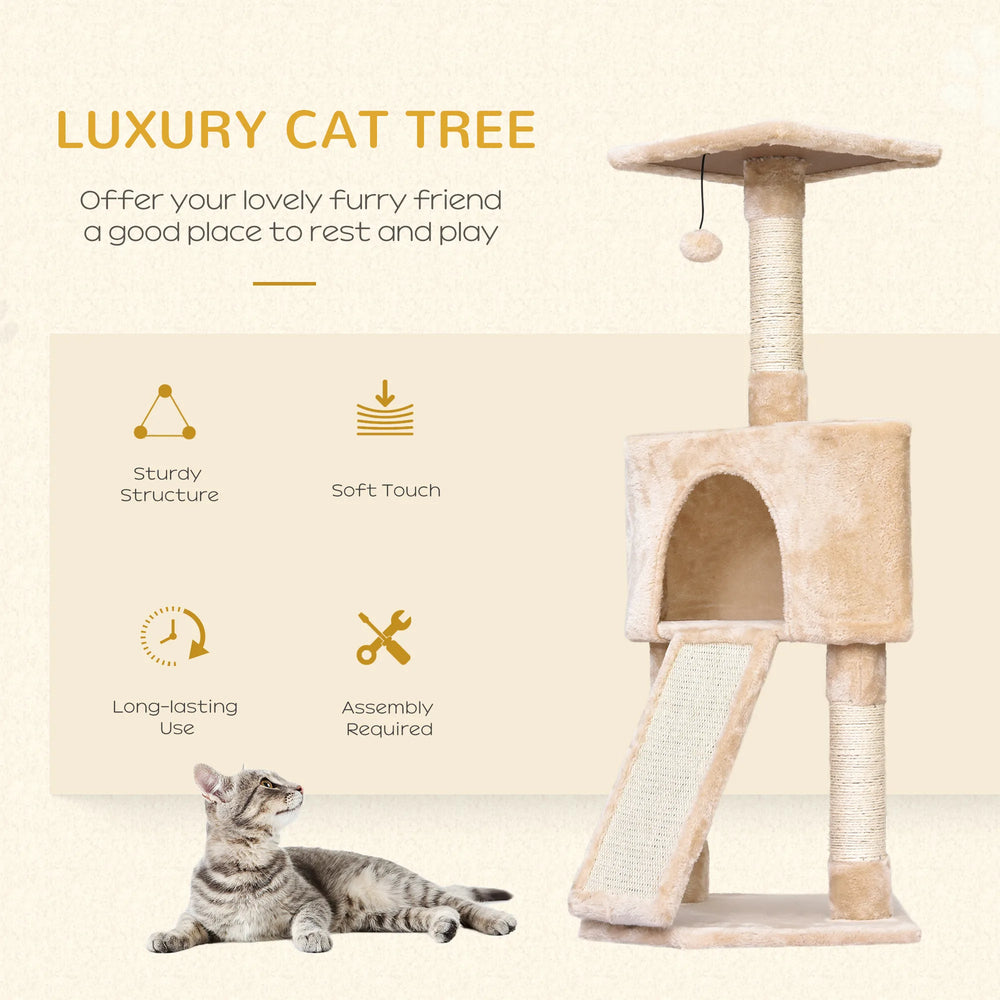 PawHut Corner Cat Tree for Indoor Cats, Kitten Tower with Scratching Post House Ladder Toy - Beige
