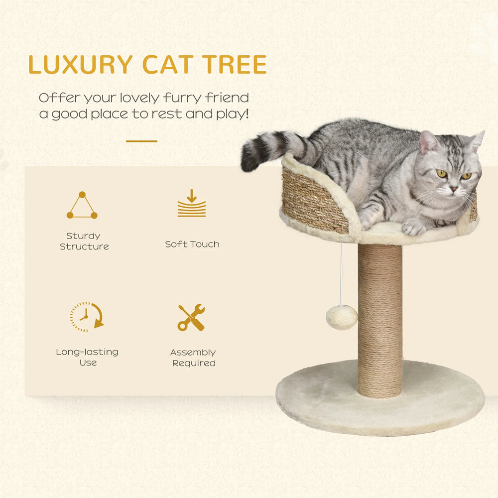 PawHut Cat Tree Cat Scratching Post for Indoor Cats Kitten Play Tower Activity Centre Climbing Stand with Dangling Ball Beige