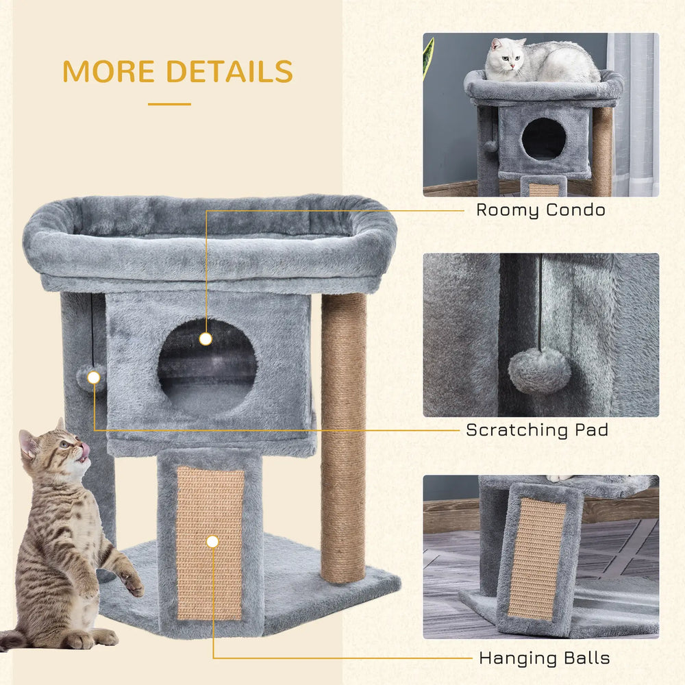 PawHut Cat Tree Tower for Indoor Cats Cat Scratching Post Climbing Activity Centre w/Jute Scratching Pad, Toy Ball, Cat House - Grey
