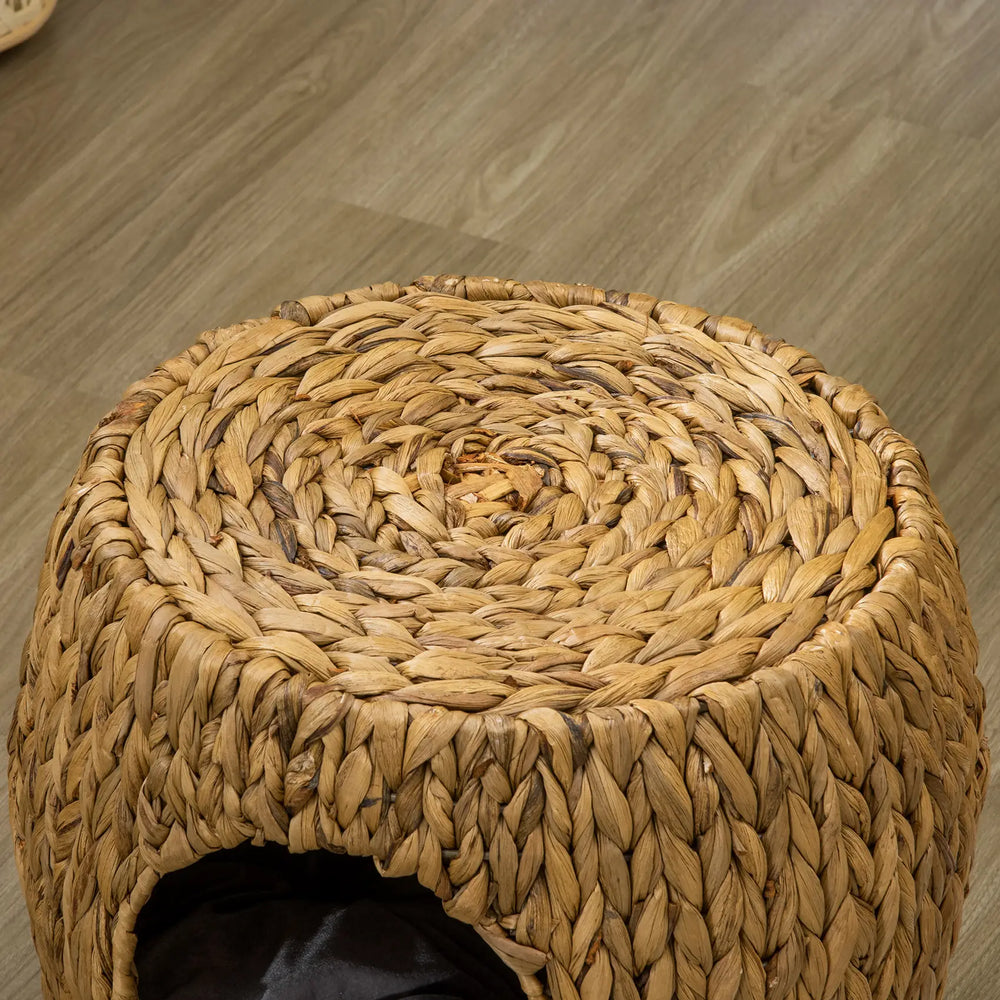 PawHut Wicker Cat Bed Cat House Stool with Washable Cushion, 44 x 43 x 41cm