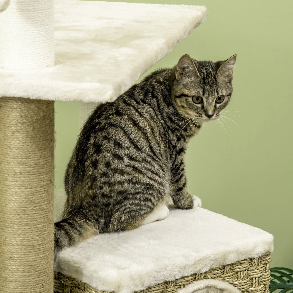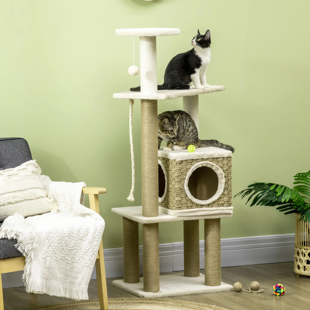 PawHut Cat Tree, with Scratching Post, Cat House & Hanging Toy Ball - Beige