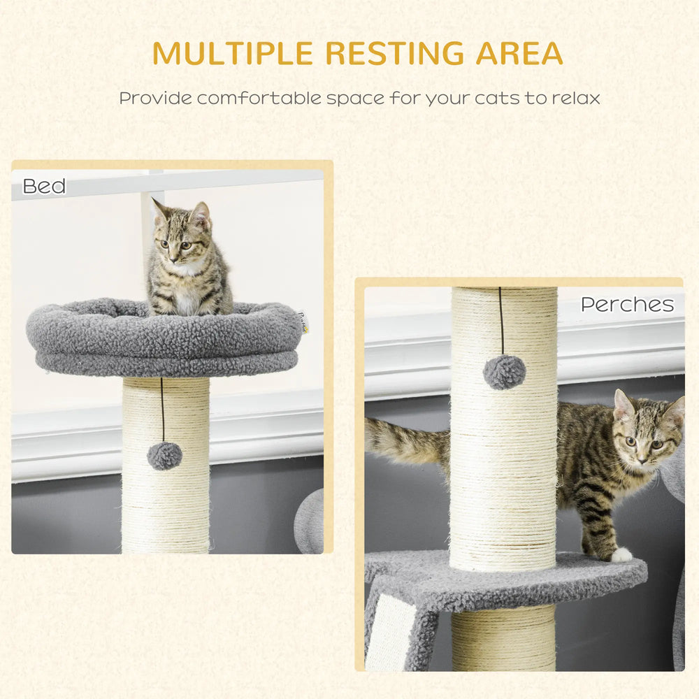 PawHut Cat Tree Tower with Scratching Posts, Pad, Bed, Toy Ball-Dark Grey