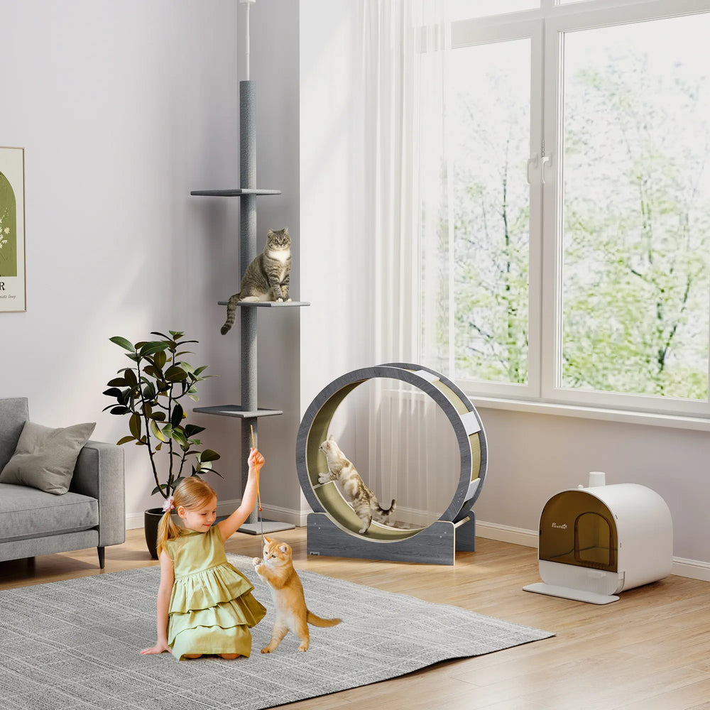 A must-have for cat owners, this PawHut cat tree keeps pets active and entertained. Featuring a spinning wheel that supports your pet's natural movements, it also includes a built-in brake to ensure safe, controlled play. Inside, a scratching pad allows cats to strengthen their claws and stay healthy, which is easily replaceable when needed. This fun addition transforms their world for the better, making it a wonderful blend of entertainment and exercise.