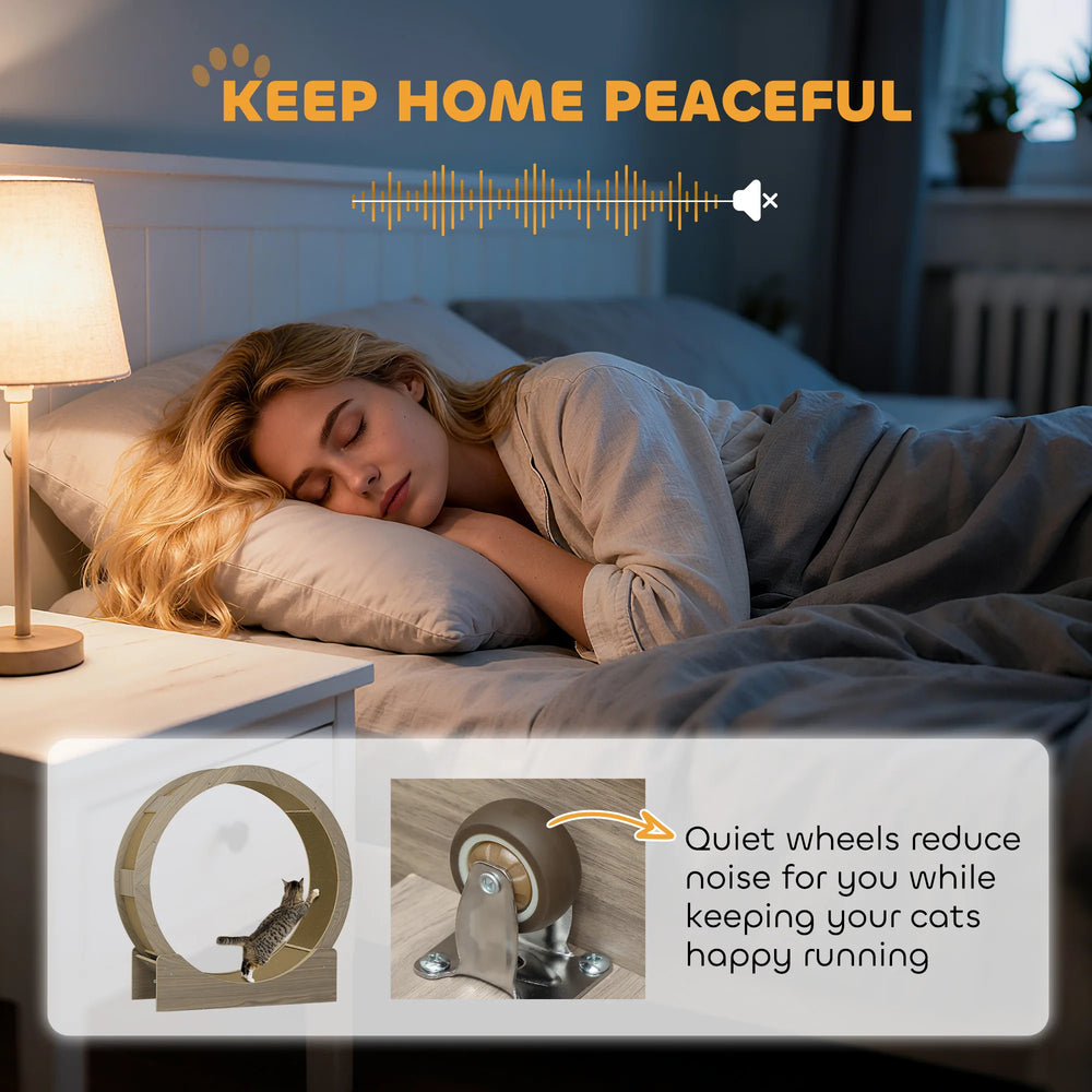 PawHut Cat Wheel with Brake, Scratching Pads - Walnut Brown