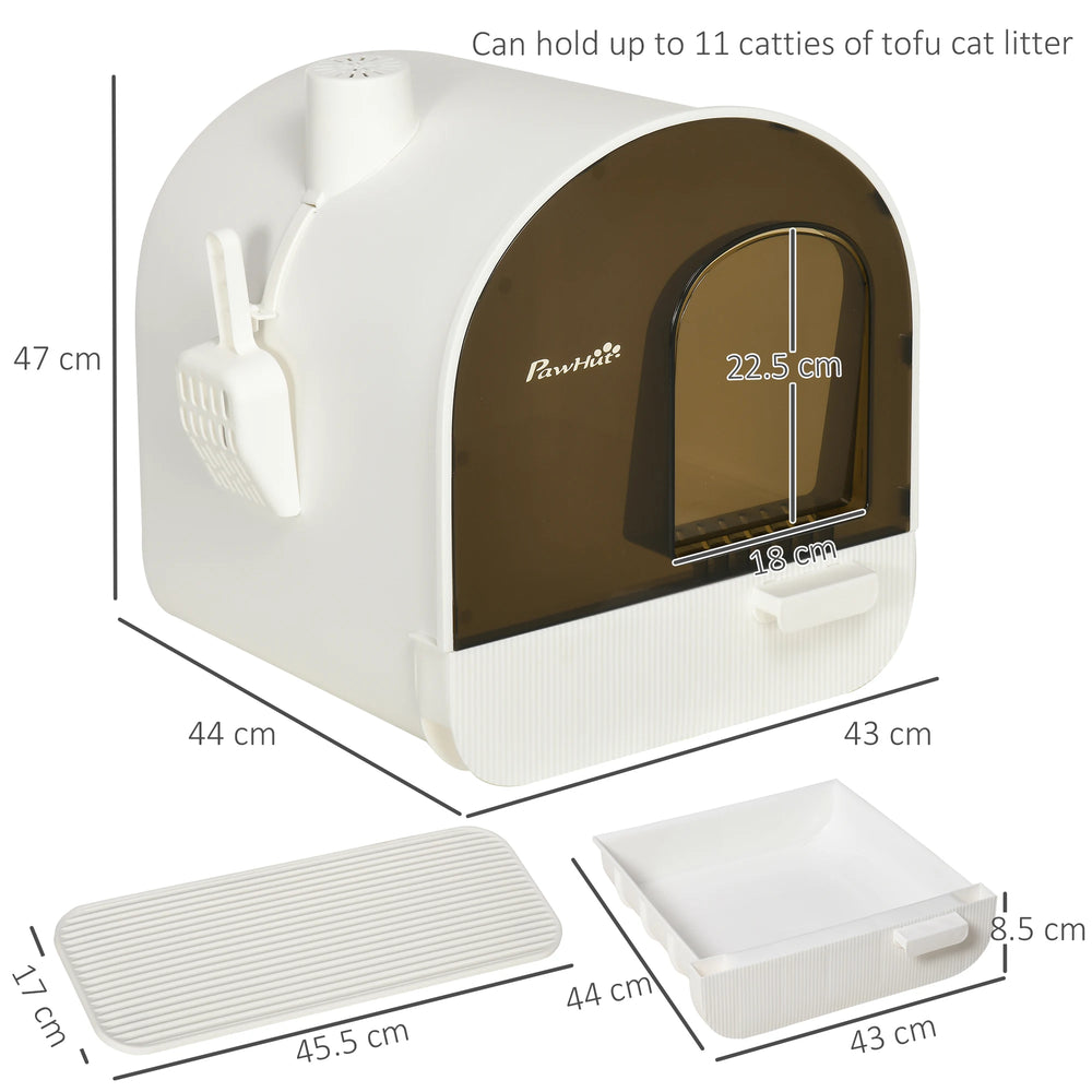 PawHut Hooded Cat Litter Box, Kitten Litter Tray, with Lid, Scoop, Filter, Flap Door