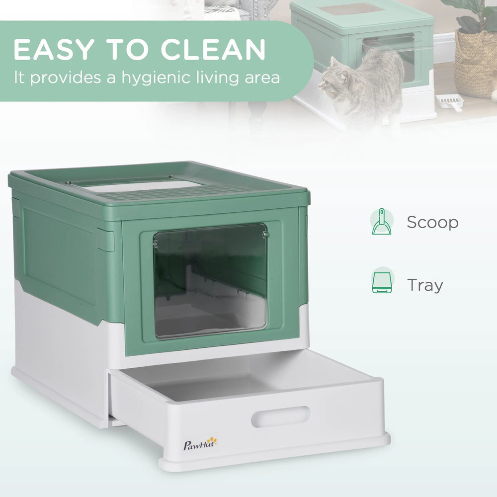 PawHut Hooded Cat Litter Box, Portable Pet Toilet, with Scoop, Front Entry - Green