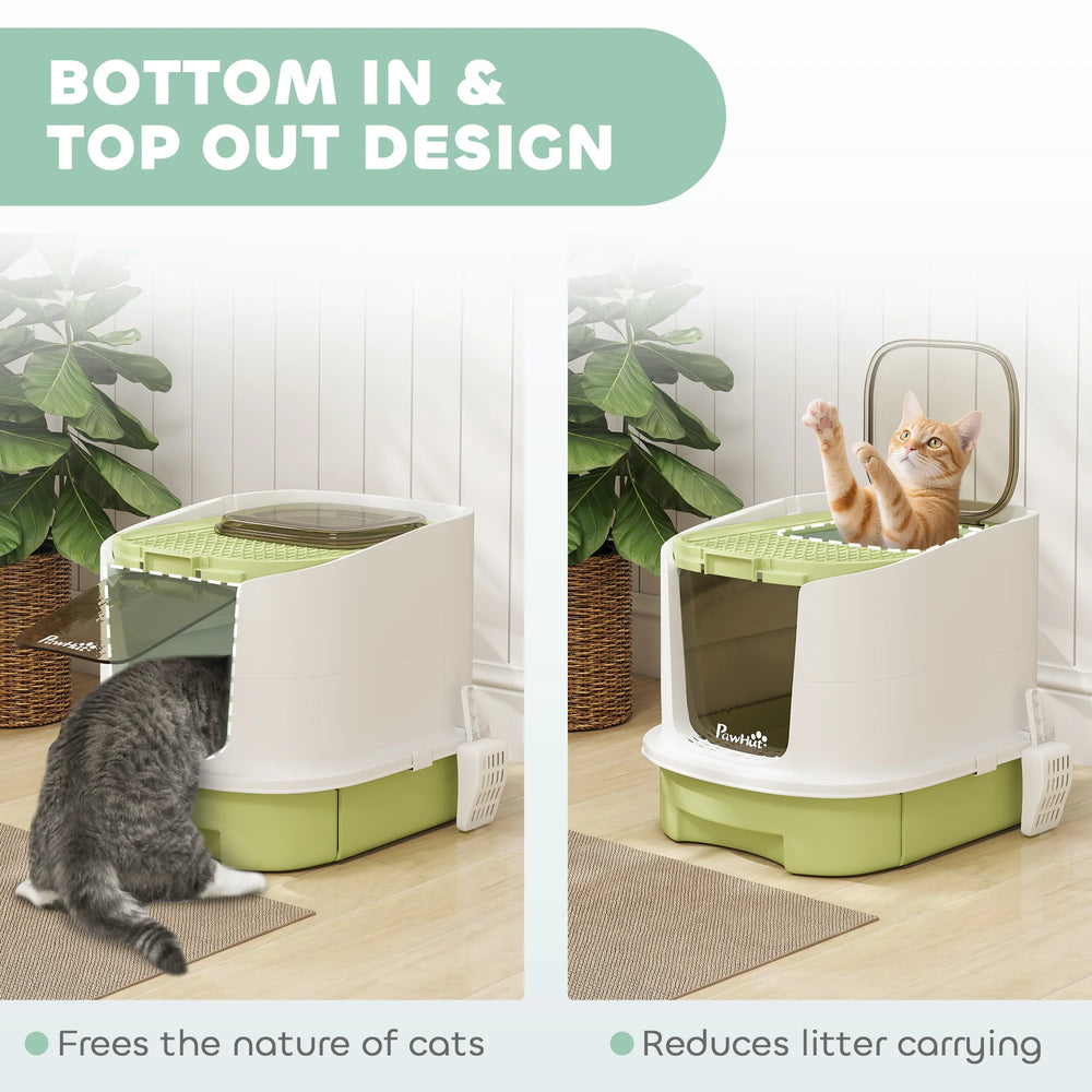 PawHut Cat Litter Box with Lid, Scoop, Deodorisation Bags, Top Entry, Green