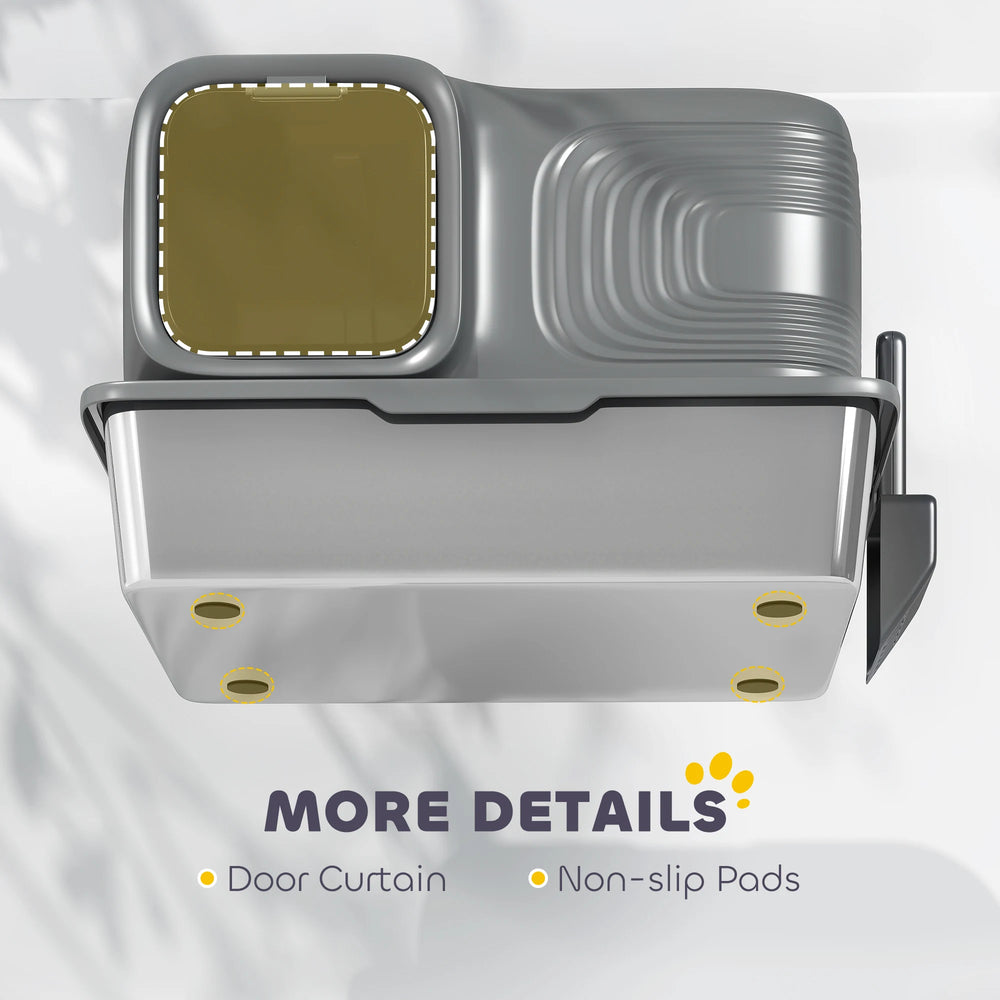 Keep your home fresh and cat's happy with PawHut cat litter tray! Equipped with a built-in plasma deodoriser featuring adjustable airflow and three fan speeds. The sealed stainless steel base prevents leaks and odours, making clean-up quick and easy. Smart infrared sensors detect when your cat enters or leaves, activating the deodoriser only after they're done no surprises, just comfort and safety. This cat litter tray is great for cat owners who want a cleaner, smarter litter solution.