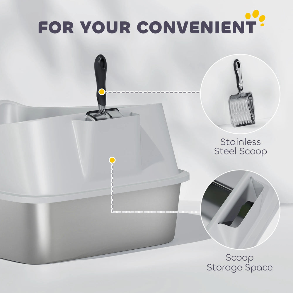 PawHut XXL Stainless Steel Cat Litter Box with High Sides, Metal Scoop, 70 x 50 x 30 cm