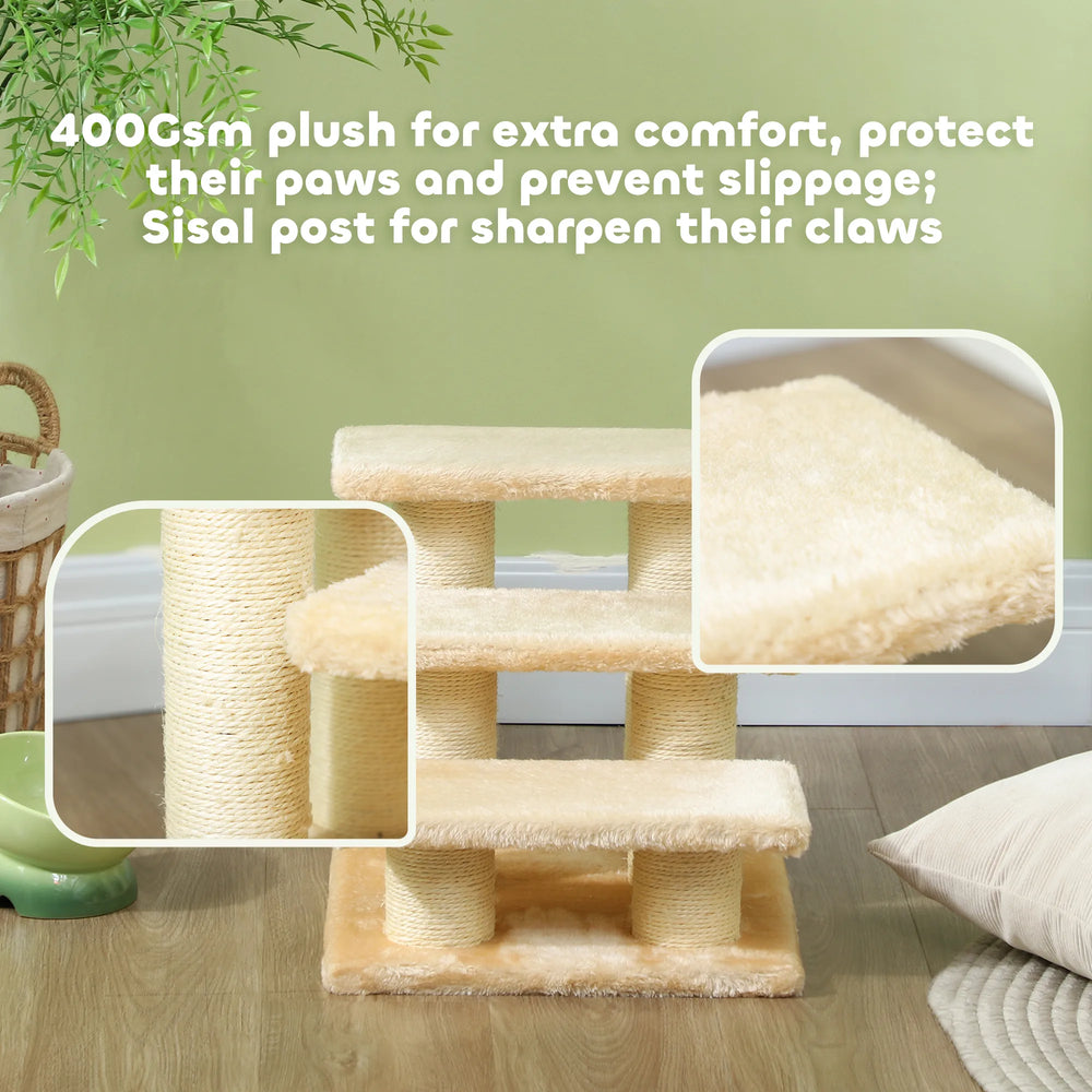 PawHut Pet Stairs 3-step Pet Ladder Cat dog Stairs Climb Ladder Cat Tree, Beige