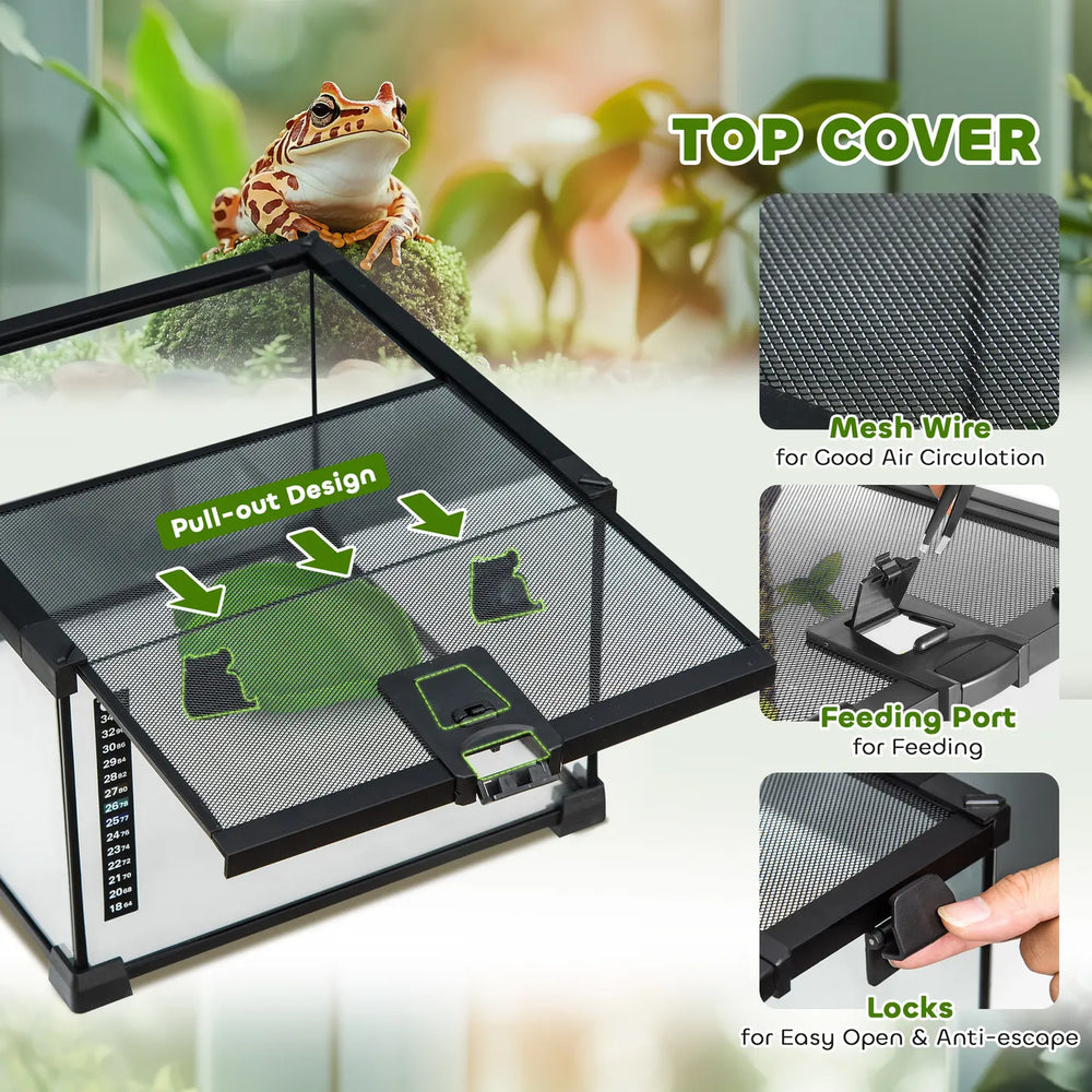 - AIR CIRCULATION: The top is made of wire mesh to provide adequate ventilation to meet the needs of the reptile keepers. The pull-out top cover includes a feeding port for easy feeding.