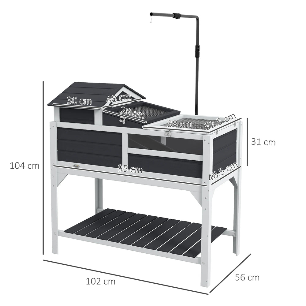 PawHut Wooden Tortoise Enclosure, Tortoise Tank w/ Adjustable Lamp Holder, Openable Lid, Removable Main House - Grey