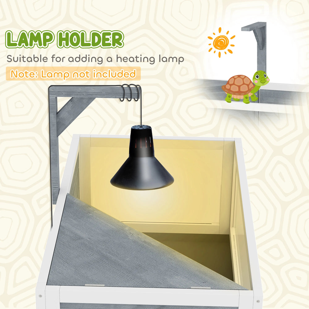 PawHut Wooden Tortoise House with Storage Shelf, Clear Observation Windows, Lamp Holder, Openable Top, Built-in Tray, Grey