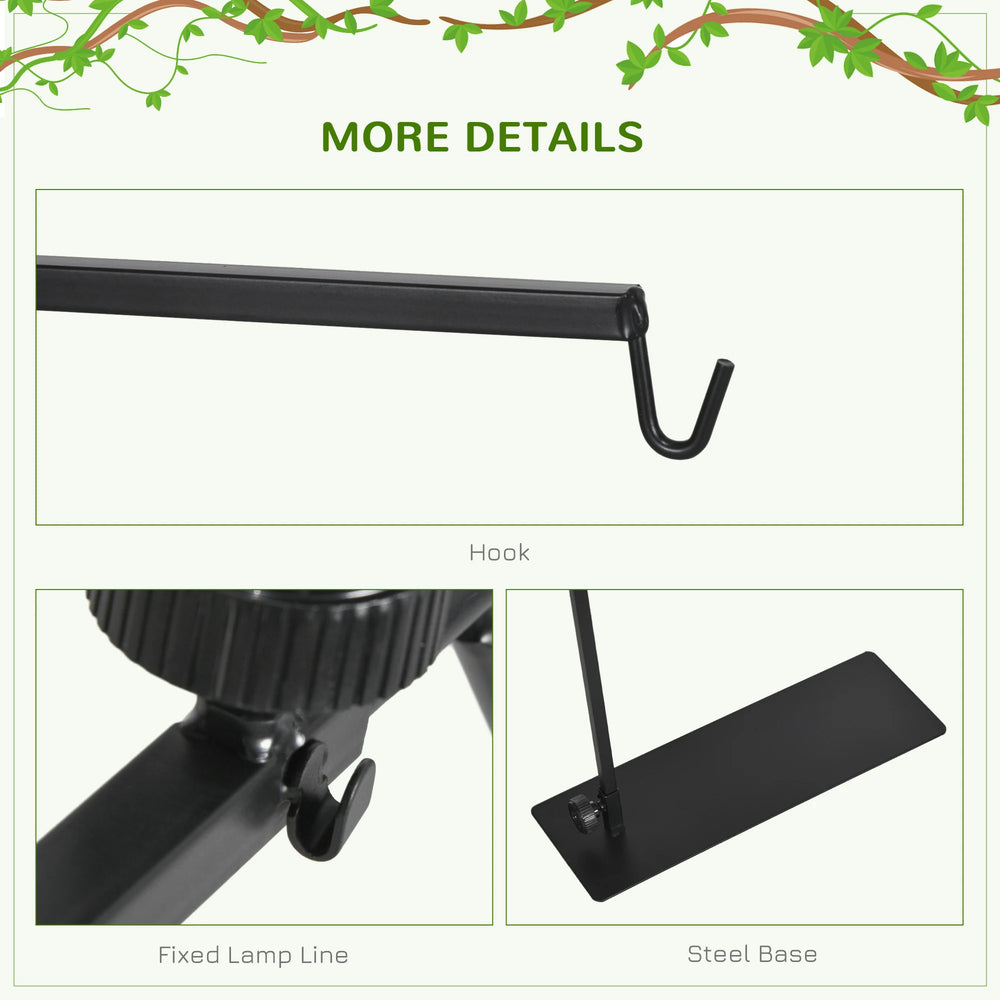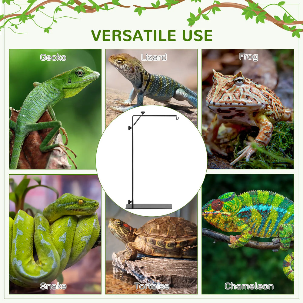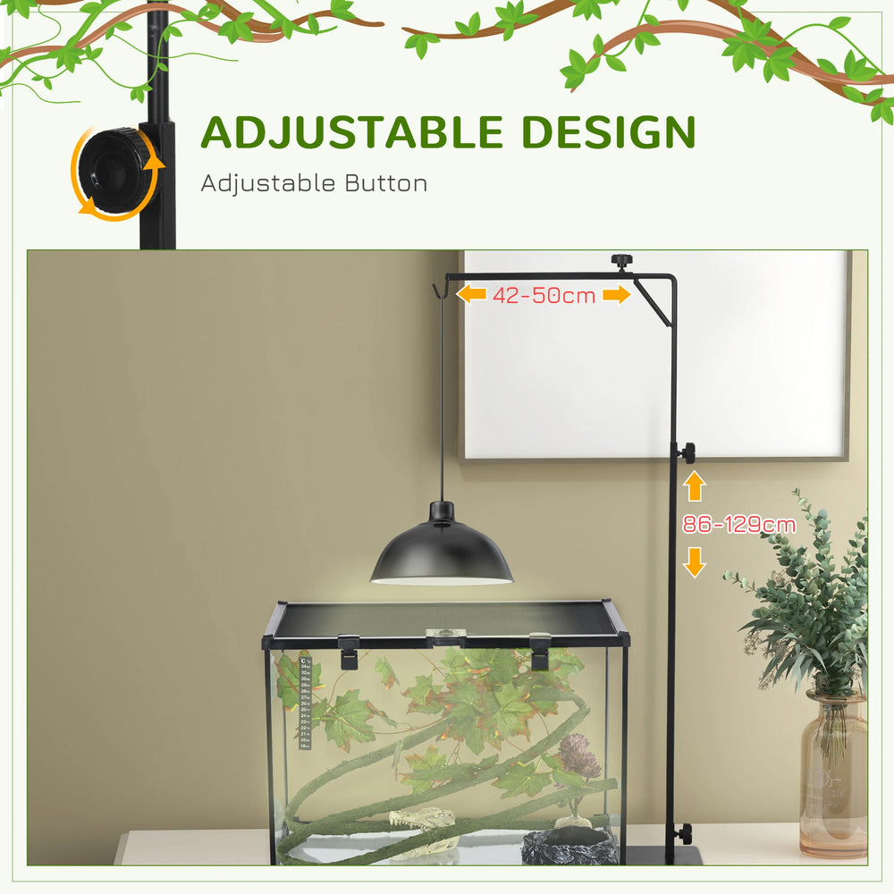 PawHut 86-129Hcm Adjustable Height and Length Reptile Lamp Stand Holder with Hook Hanging, Base - Black