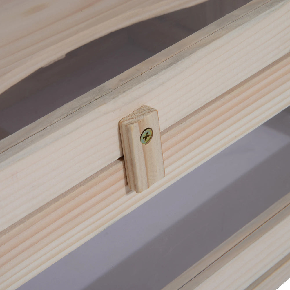 Our cage is made with multiple platforms for small animals to play. Includes two levels that are connected by a ramp to allow them to roam freely. The sunroof with a wide mesh ensures constant ventilation and facilitates entry. Glass equipment on the front for greater visibility. With this wooden cage you can provide a comfortable and safe home for your small pets.