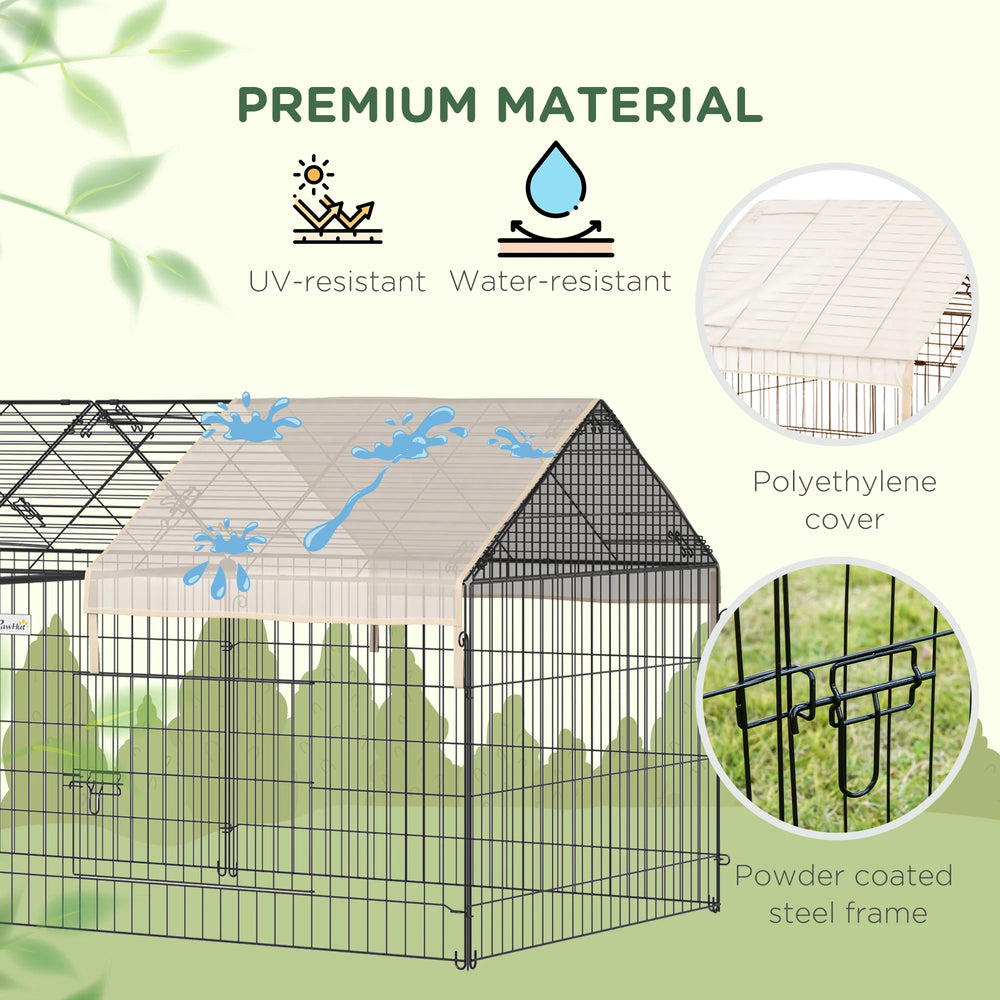 PawHut Metal Rabbit Run Playpen, Guinea Pig Cage, 220 x 103 x 103cm, Beige