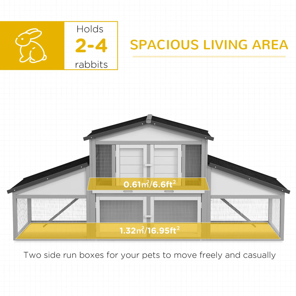 PawHut Large Rabbit Hutch with Run, Outdoor Bunny Cage, with Tray, Ramp - Light Grey