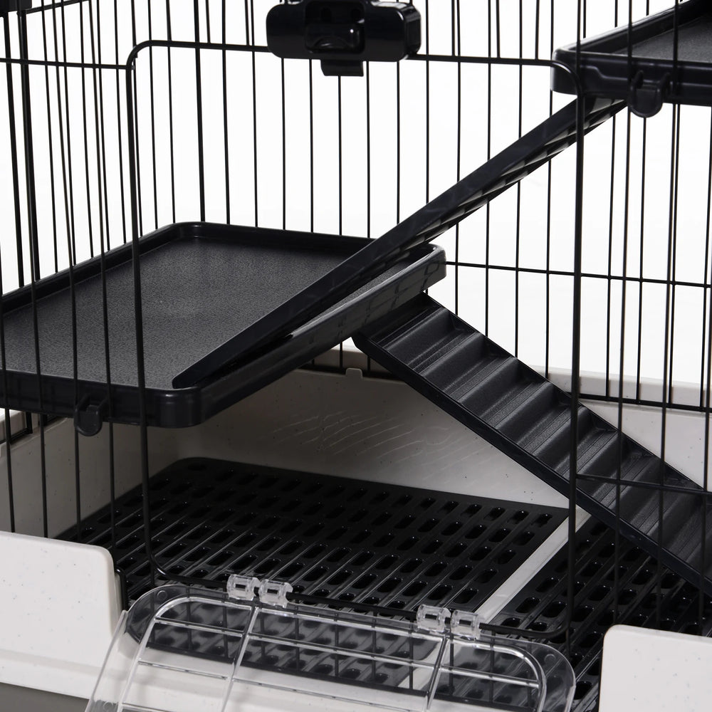 PawHut Four-Tier Small Animal Cage, for Bunnies, Ferrets, Chinchillas w/ Wheels, Tray - Black