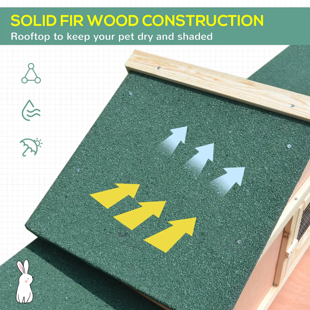 - STURDY & WEATHER RESISTANT: Constructed of nutural fir wood frame, make the rabbit cage stable and durable. Tilt asphalt roof included to against the weather elements.