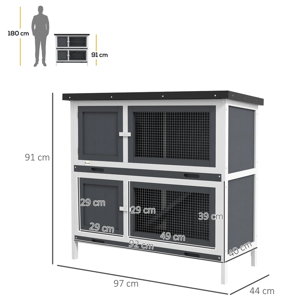 PawHut Double Decker Rabbit Hutch 2 Tier Guinea Pig House Pet Cage Outdoor with Sliding-out Tray, 100 x 47 x 91cm, Grey is backordered and will ship as soon as it is back in stock.