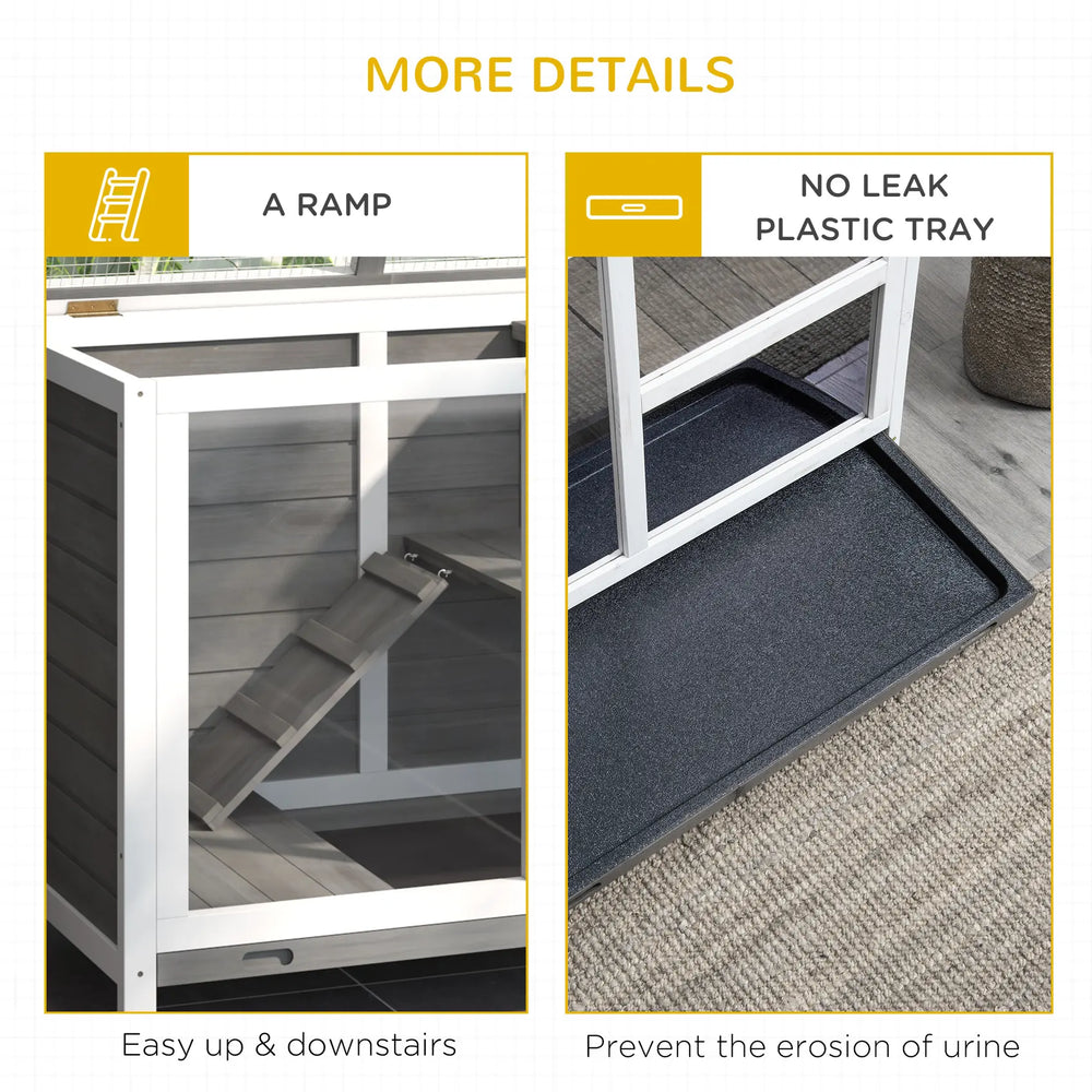 PawHut Wooden Rabbit Hutch Indoor with Wheels, Openable Roof, 91.5 x 53.3 x 73 cm, Grey