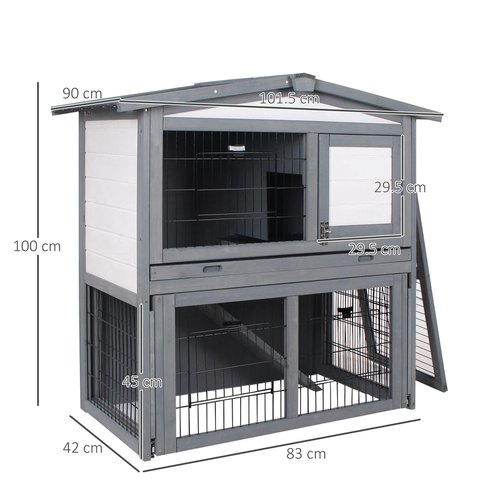 PawHut Rabbits 2-Tier Fur Wood Outdoor Hutch Guinea Pigs Hutches Grey