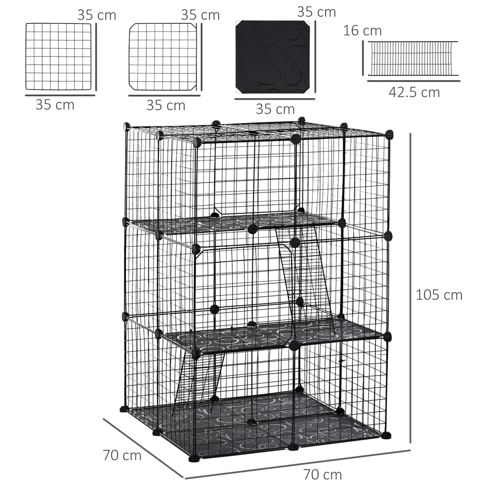 PawHut Pet Playpen DIY Small Animal Cage Enclosure Metal Wire Fence 39 Panels with 3 Doors 2 Ramps for Kitten Bunny Chinchilla Pet Mink Black