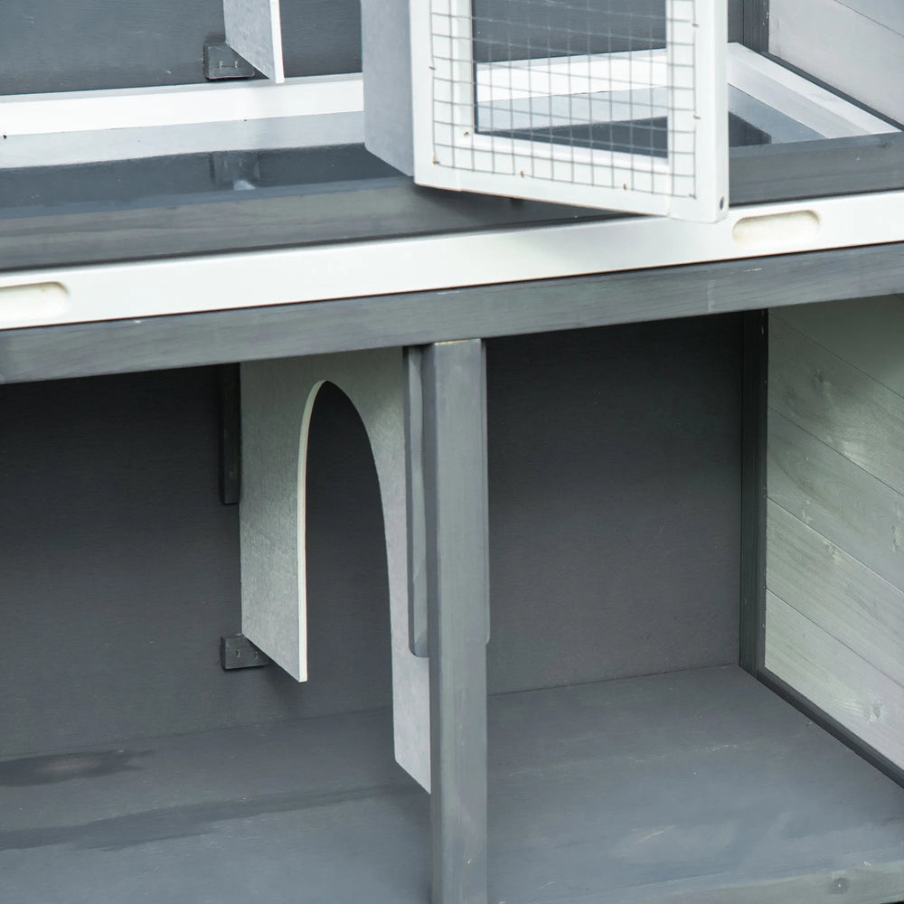 PawHut Rabbit Hutch Outdoor Guinea Pig Hutch 2 Tier Wooden Cage w/ Ramp, Divider, Openable Roof, 125 x 48 x 100cm - Grey