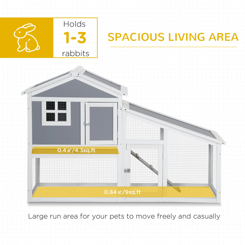 PawHut Two-Tier Rabbit Hutch, with Sunlight Panel Roof, Slide-Out Tray - Grey