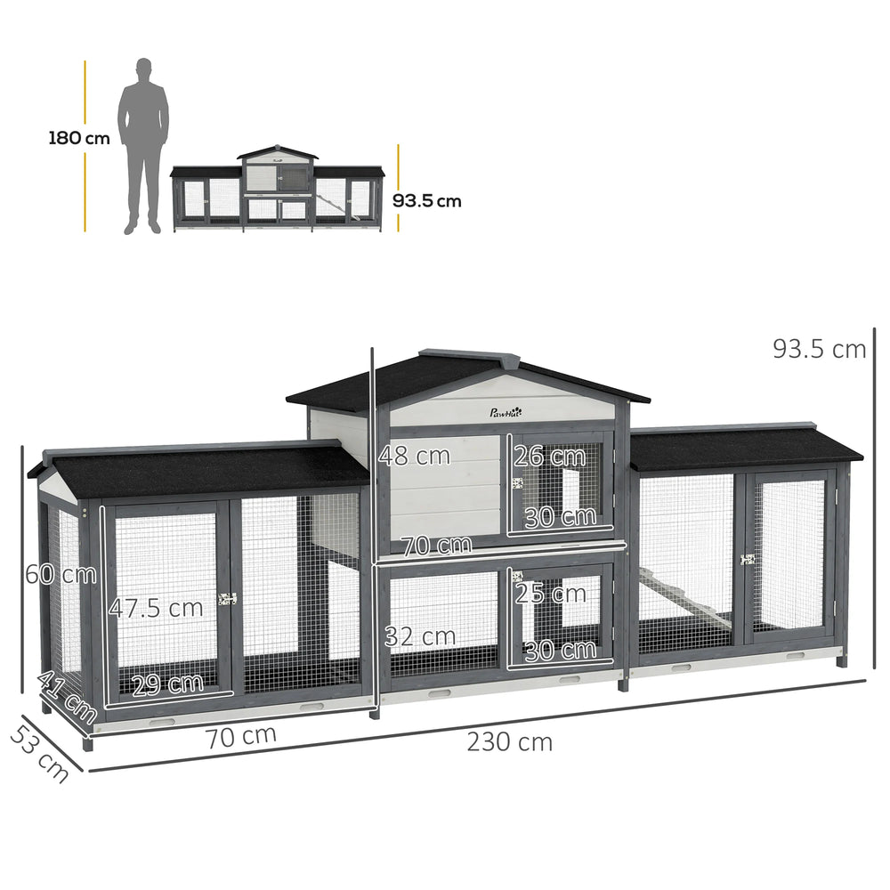 PawHut 2-Tier Large Rabbit Hutch Outdoor with Double Side Run Boxes, No-leak Plastic Tray, Ramp, 230 x 53 x 93.5cm, Light Grey
