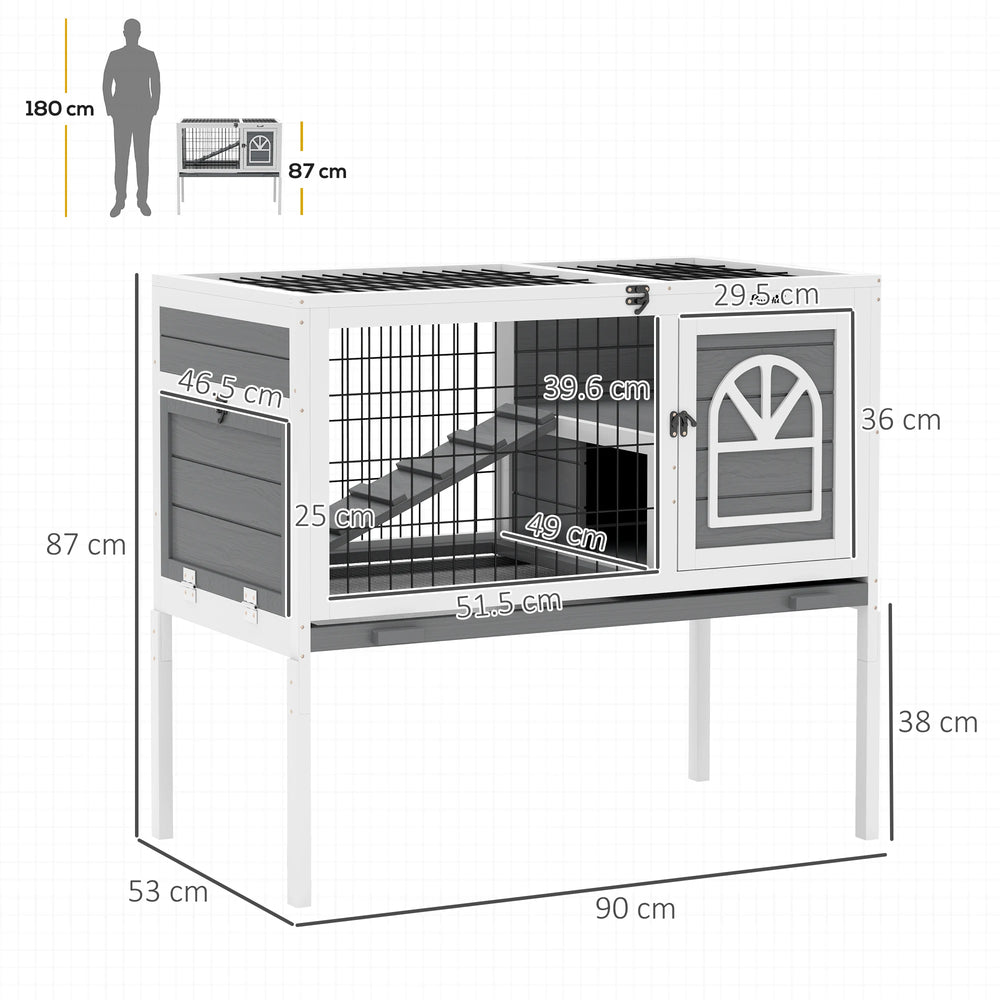 PawHut Wooden Rabbit Hutch, Guinea Pig Cage, with Removable Tray, Openable Roof, Grey