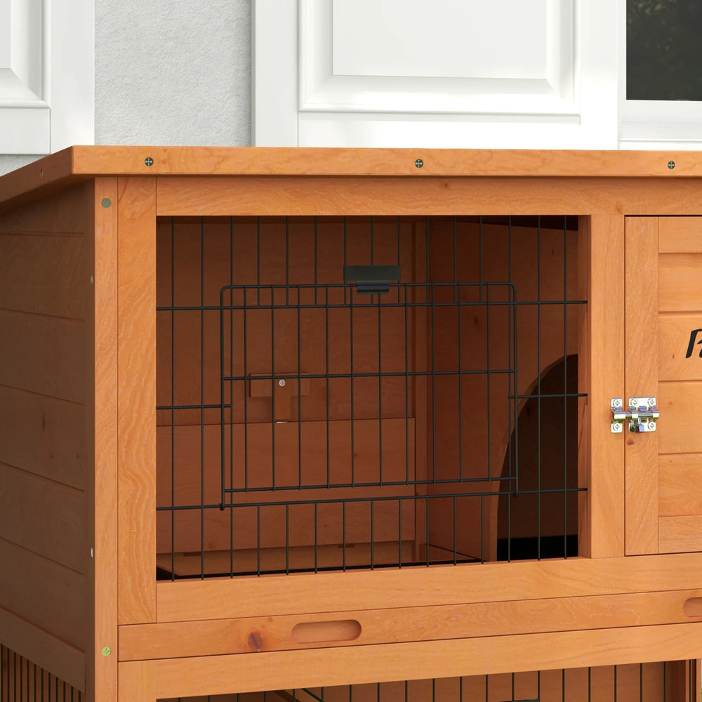 PawHut Two-Tier Antiseptic Wood Rabbit Hutch, 80cm Guinea Pig Hutch with Run - Orange