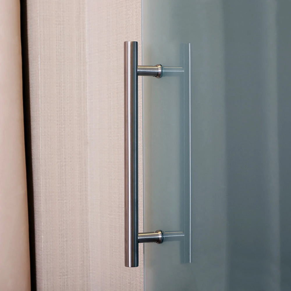 This elegant and modern sliding glass door will transform your home effortlessly and easily. Made of high quality glass, it is solid and stable, with its frosted look giving your room a wider and more open feel. It's very easy to open and close, thanks to the sliding rails and handles on both sides.