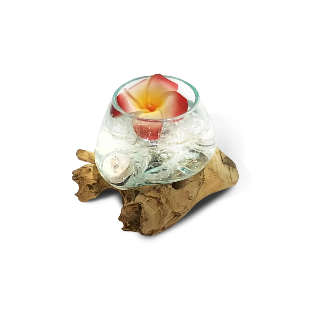 Please note this product should not be used with candles or any heat source. Because it is made from natural root timber and hand‑blown glass, sizes and appearance vary slightly from the illustration and dimensions are approximate. Where possible, orders are requested in multiples of six.