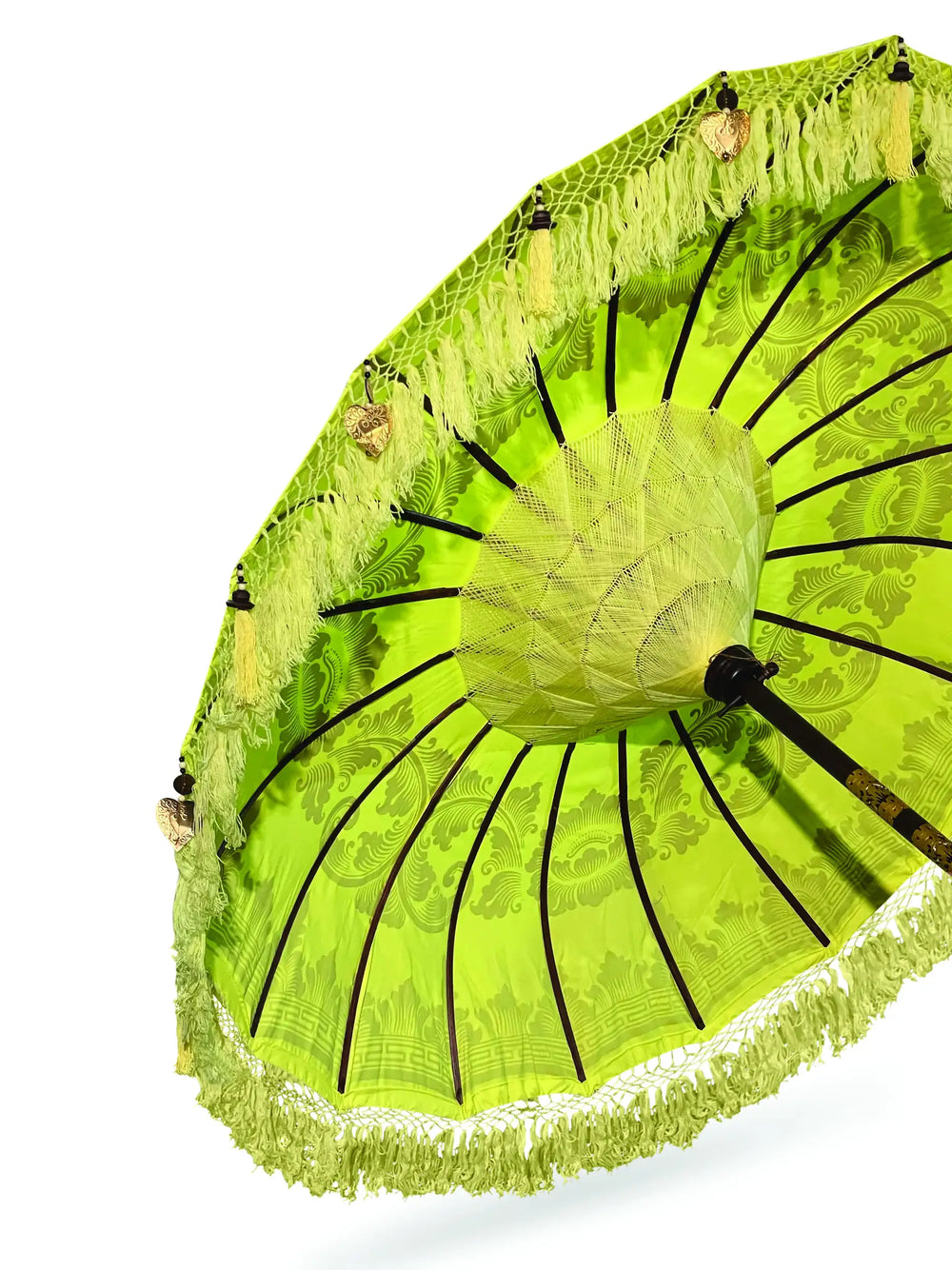 Beautiful hand-made Balinese Ceromonial Parasols - hand-carved, hand-printed, hand-woven and hand-painted by a small family business in Ubud, Bali.