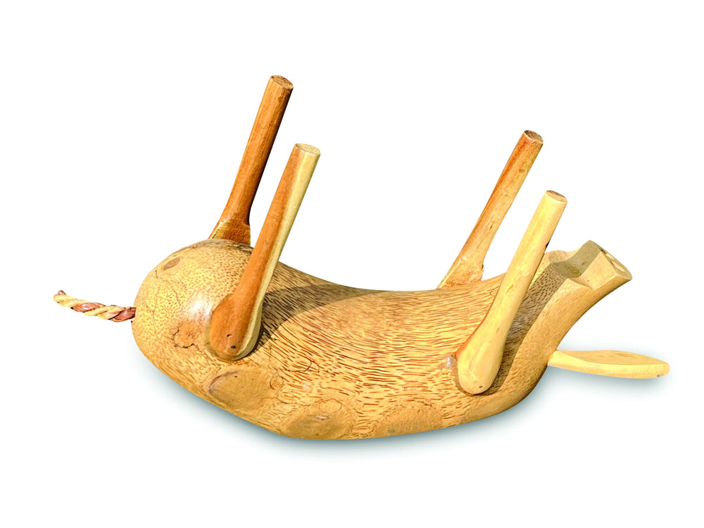 A charming and humorous way to display a favourite bottle, this drunken pig bottle holder stands on a table or bar to spark conversation. Each piece is hand carved from sustainable bamboo and given a natural finish so the warm grain shows through.