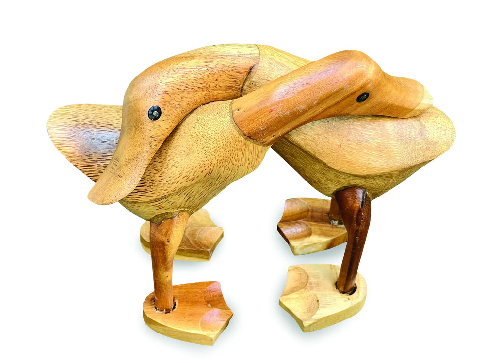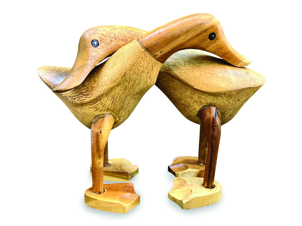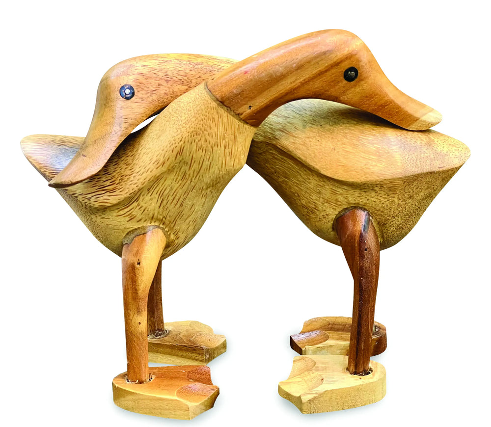 These charming hugging ducks are hand carved from sustainable bamboo by Indonesian artists using traditional carving techniques. Each pair has a natural finish and offers a warm, rustic accent that suits mantelpieces, shelves and sideboards.