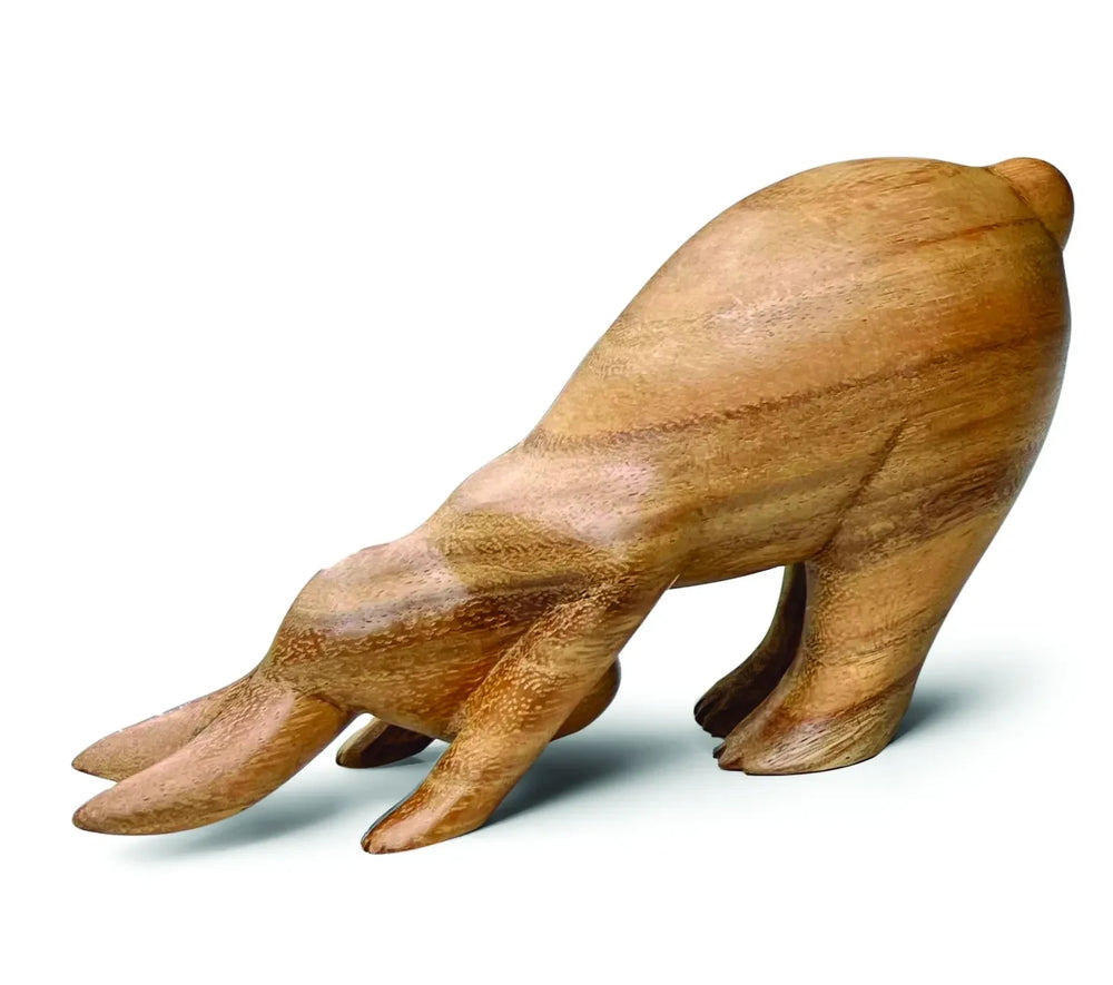 This hand-carved Yoga Bunny captures a playful downward dog pose in solid hardwood. An exclusive Makasi product, the piece is offered only as a wooden, hand-crafted ornament — a distinctive alternative to mass-produced plastic imitations.