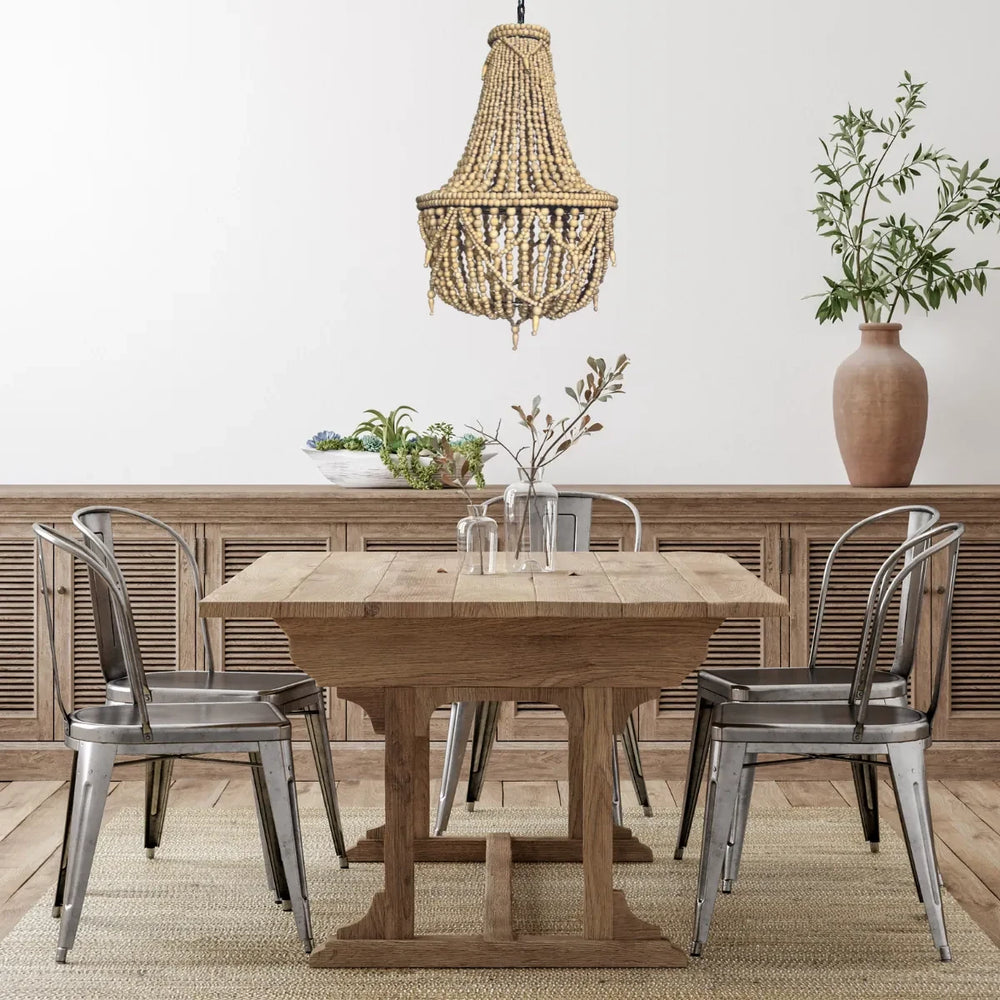 - Handcrafted wooden-bead construction gives a tactile, decorative finish that complements relaxed and boho interiors while creating soft, ambient lighting.