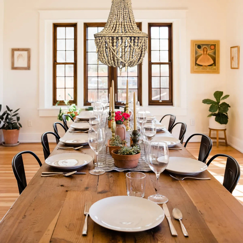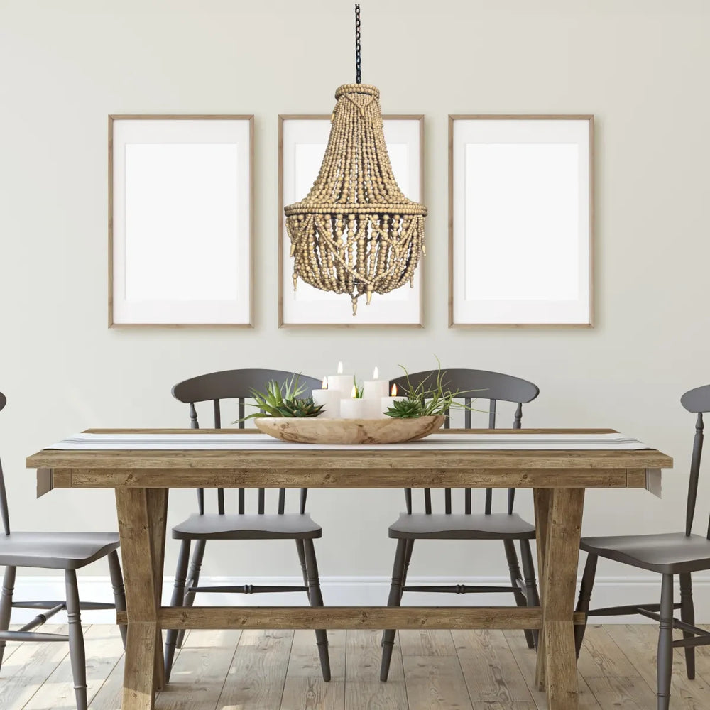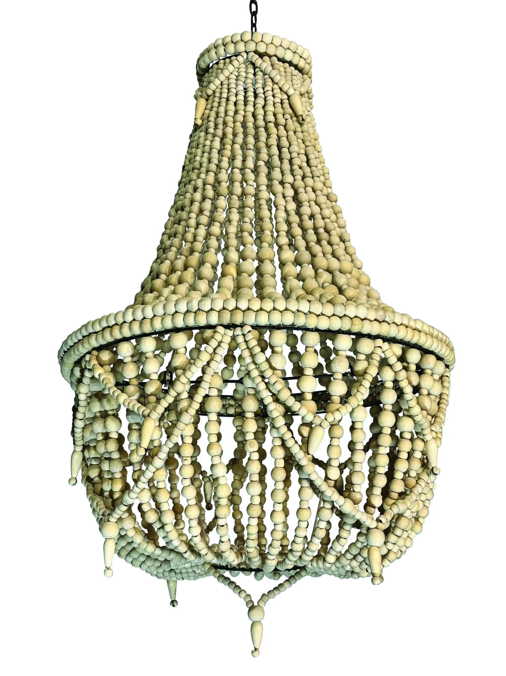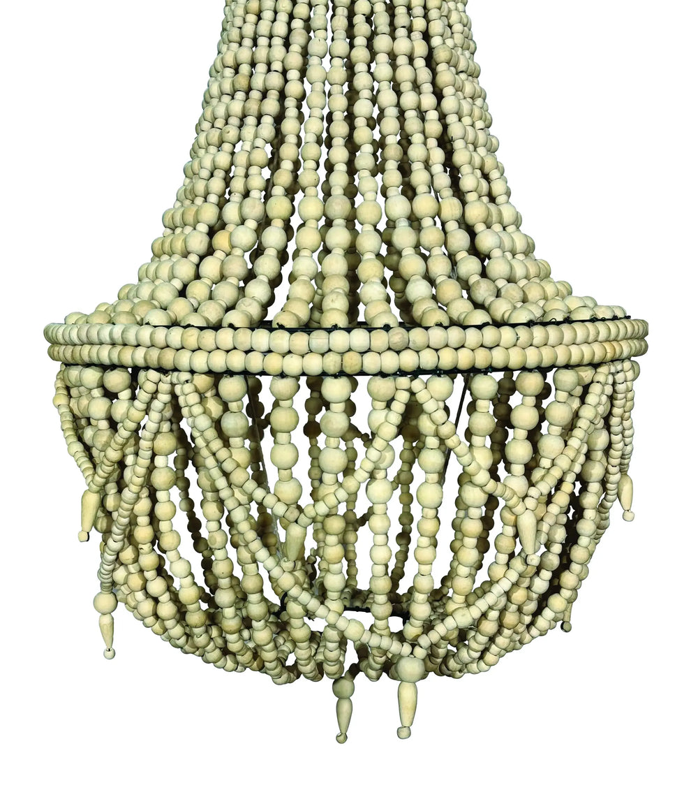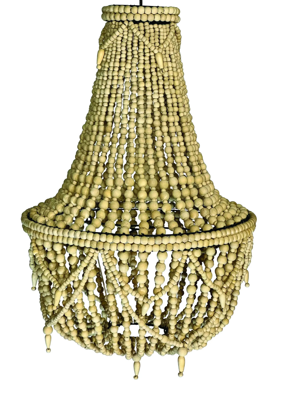 This hand-crafted artisan chandelier lampshade is made from wooden beads for an opulent, textured look that softens and warms overhead lighting. Each pendant is individually made, so appearance and bead arrangement can vary slightly — making every piece unique.