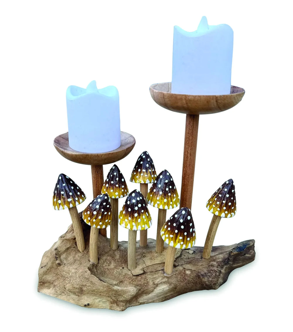 8 Pointed Yellow Cap Mushrooms With Double Candle Holder