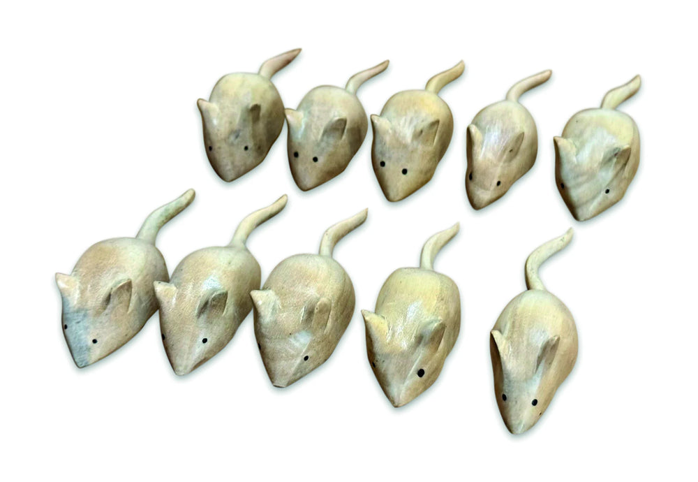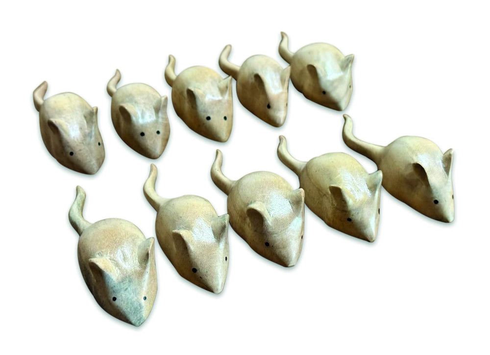 Charming tiny hand-carved mice perfect for decorating displays, using in craft projects or displayed on their own. Sold in a pack of 10 for you to price individually or as a group.