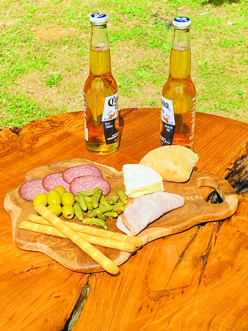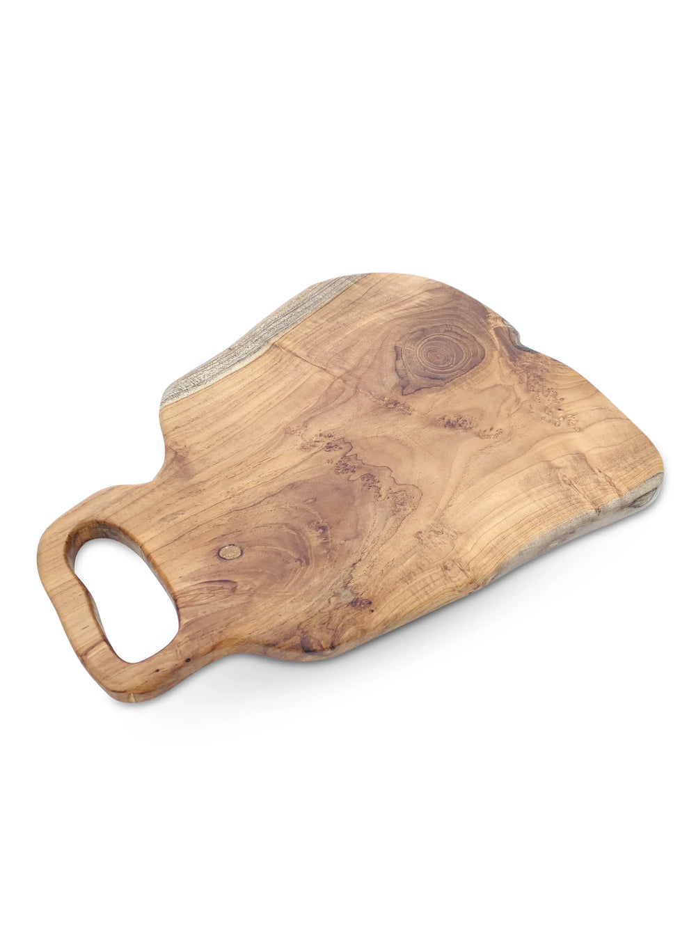 The board features a built-in handle for easy lifting and carrying, and each piece is handcrafted so no two boards will look exactly the same. The high natural oil content of the timber reduces maintenance and gives a warm, long-lasting finish.