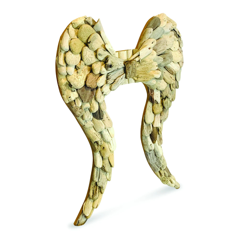 Driftwood Style Angel Wing Wall Art 60cm, Teak Root Carved Wing Sculpture