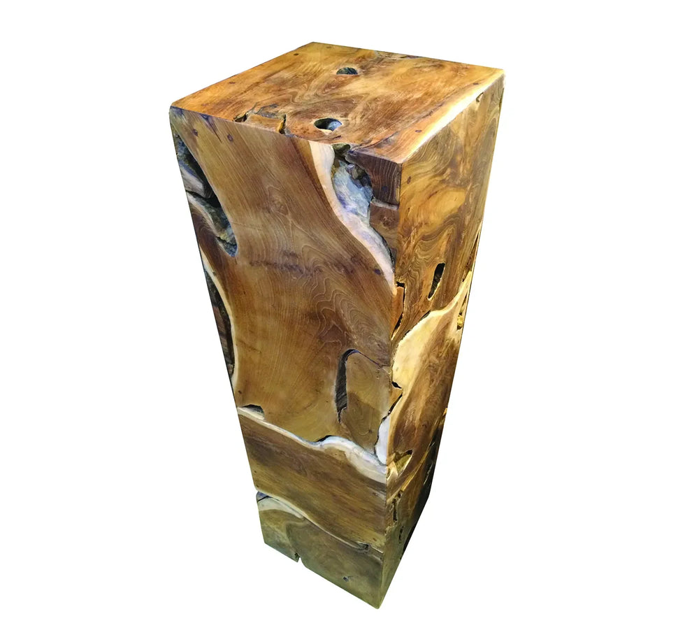 This tall Root Block Column is hand carved from teak root and sculpted to a smooth finish that highlights the natural grain and contours of the wood. Its solid, single-piece construction makes it a striking pedestal for art, a compact side table for drinks, or a stable lamp stand.