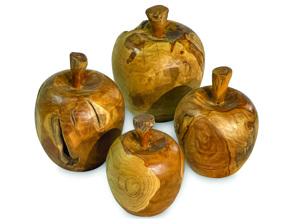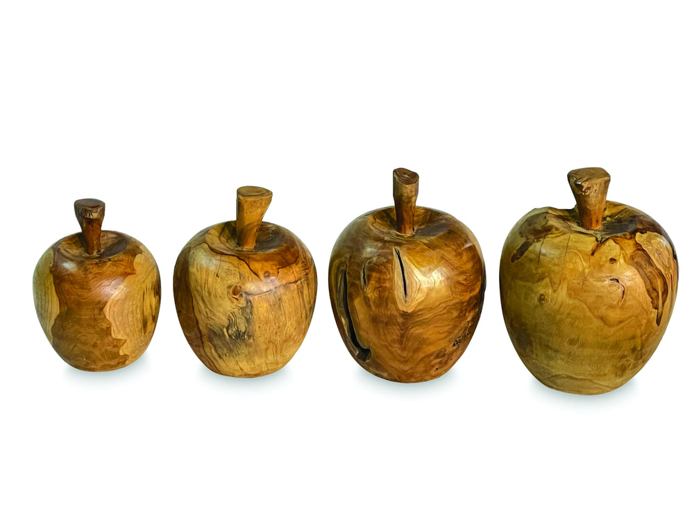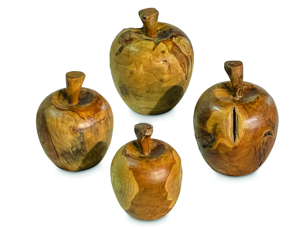 These decorative apples are hand-carved by Indonesian artists from teak root, sold as a set of four. Each piece celebrates the natural grain and irregularities of reclaimed root wood, making every apple a unique accent for your home.