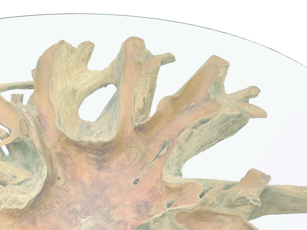 The glass top is safety tempered glass, offering a clear view of the sculptural root beneath while remaining robust for everyday use. As every base is a natural root, sizes and weight are approximate and the final appearance will vary from the images shown.